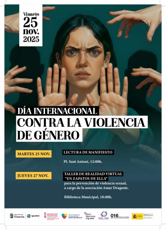 La concejalía de Política Social del Ayuntamiento de Vinaròs, conmemorará el 25N, Día Internacional contra la Violencia de Género. Por una parte, el martes 25N, se realizará la Lectura de la Declaración Institucional a las 12.00h, en la plaza de Sant Antoni.